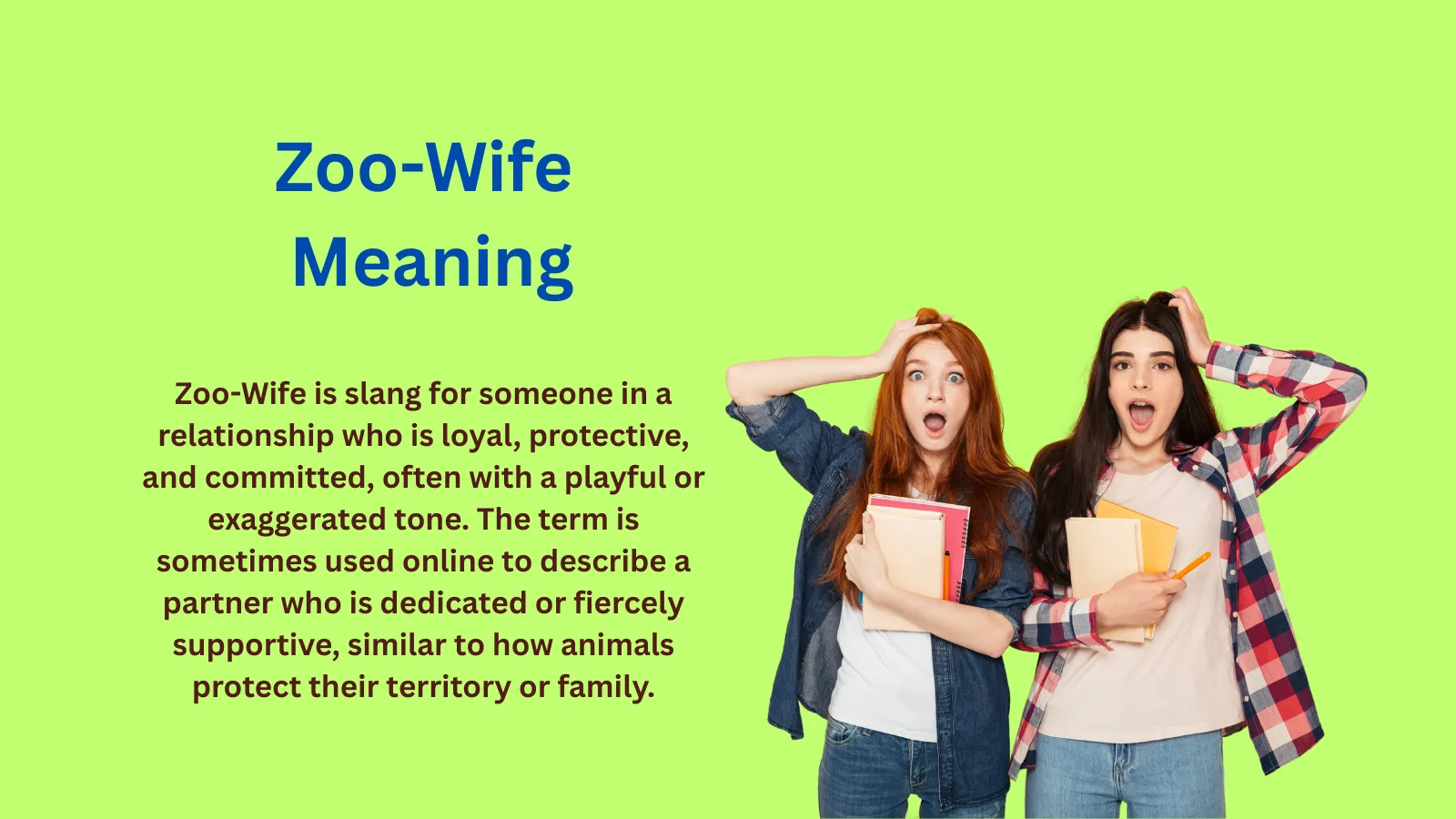 Zoo-Wife is slang for someone in a relationship who is loyal, protective, and committed, often with a playful or exaggerated tone. The term is sometimes used online to describe a partner who is dedicated or fiercely supportive, similar to how animals protect their territory or family.